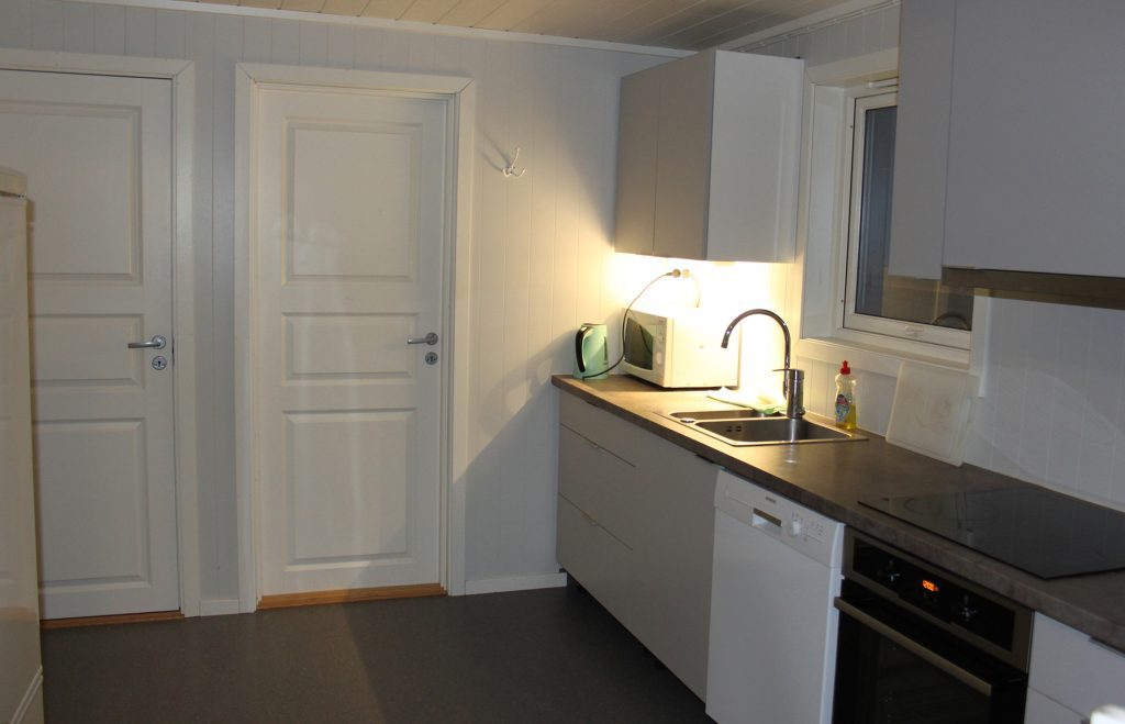 Hytte 8 har 3 soverom. Et soverom med en enkeltseng, et med 3 enkeltsenger, og et med 2 enkeltsenger. Fullt utstyrt kjøkken, dusj og WC.